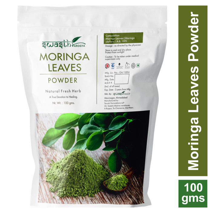 Moringa Leaves Powder is a natural herbal supplement made from carefully dried and finely ground Moringa oleifera leaves. Known for its rich nutritional profile, it provides essential vitamins, minerals, and antioxidants that support daily health and vitality. Prepared from fresh leaves and packed in a hygienic, resealable pouch, this 100-gram powder is ideal for those looking to enhance their overall wellness naturally.